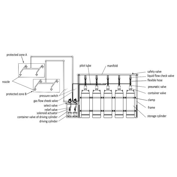 Actually, a complete fire suppression system has two parts, one is fire extinguishing part and the other is electrical elements part. Because there is a part focus on eletrical elements, so here will not talk about it anymore. The fire extinguishing part is list out as followings: